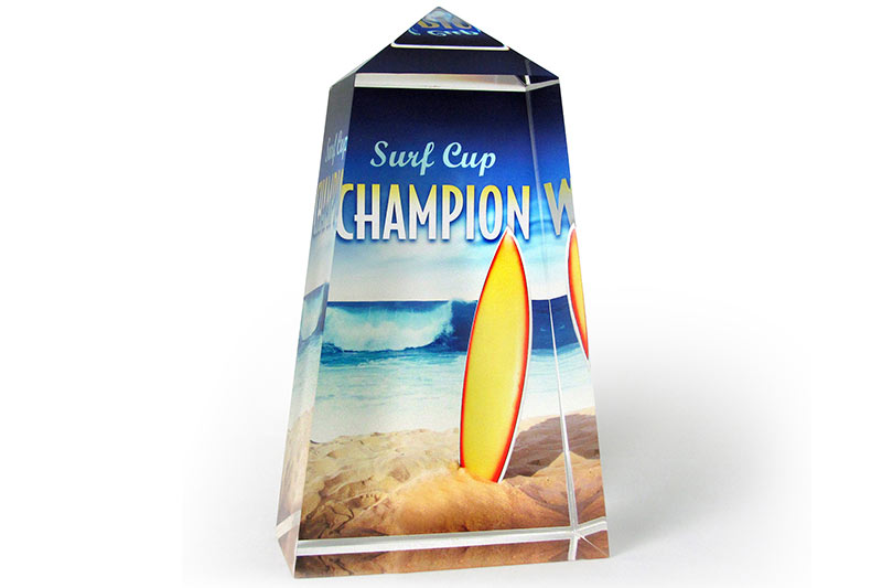 台式平板打印机允许用户在奖杯和其他厚度不超过100mm的物品上直接打印各种炫彩夺目的图案。该系列打印机综合使用了易梵CMYK、白墨和透明清漆,实现完美视觉冲击和独特立体效果,如立体品牌标识和纹理层次质感。