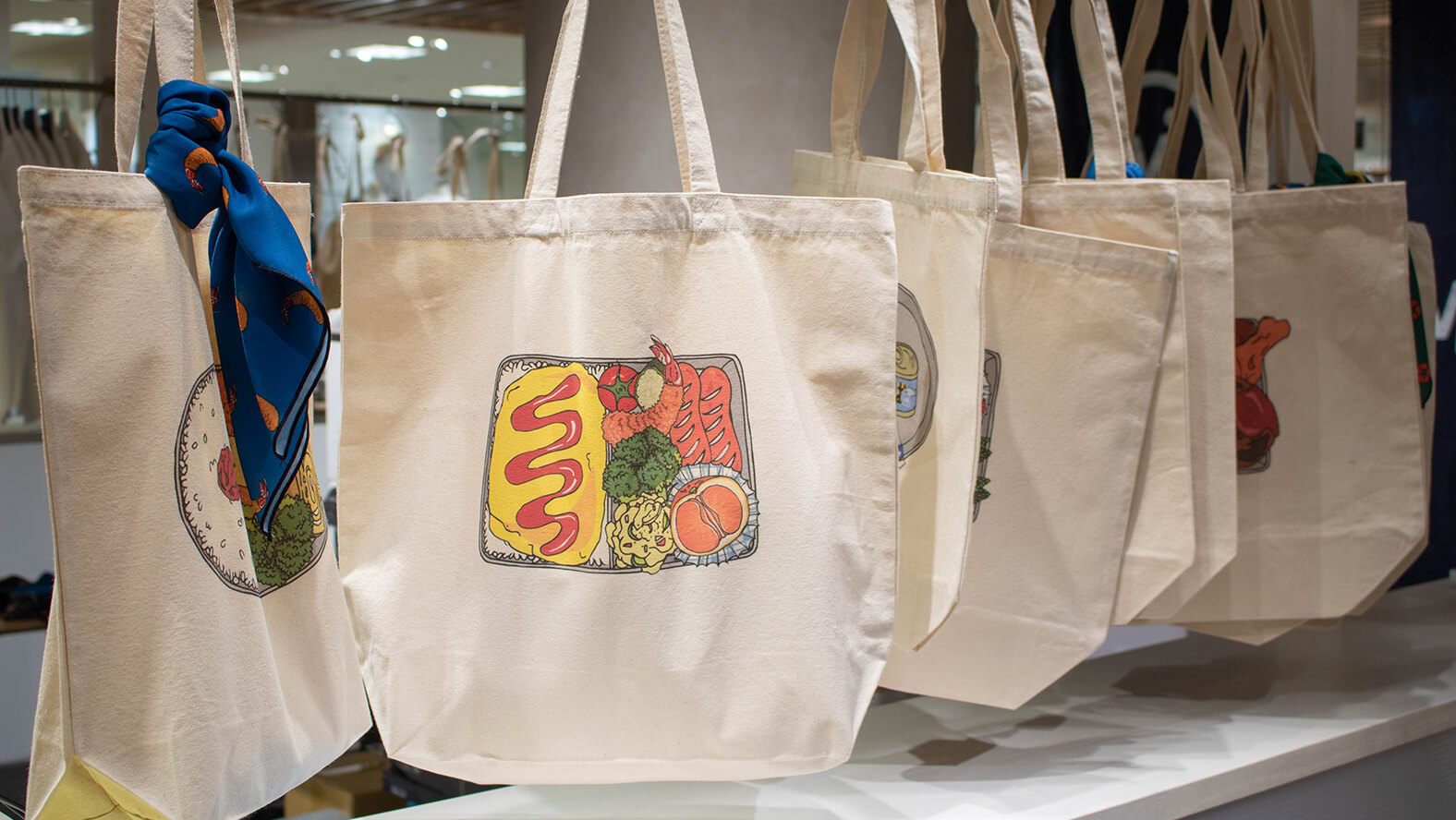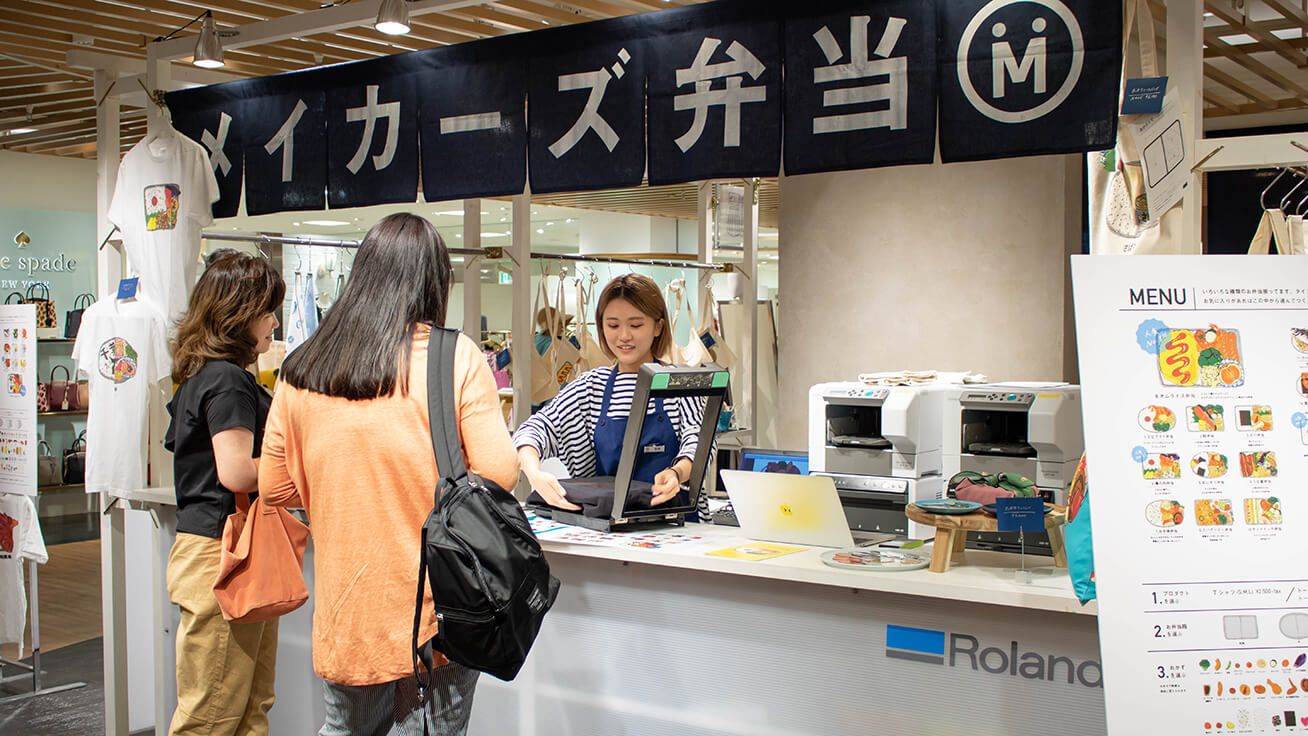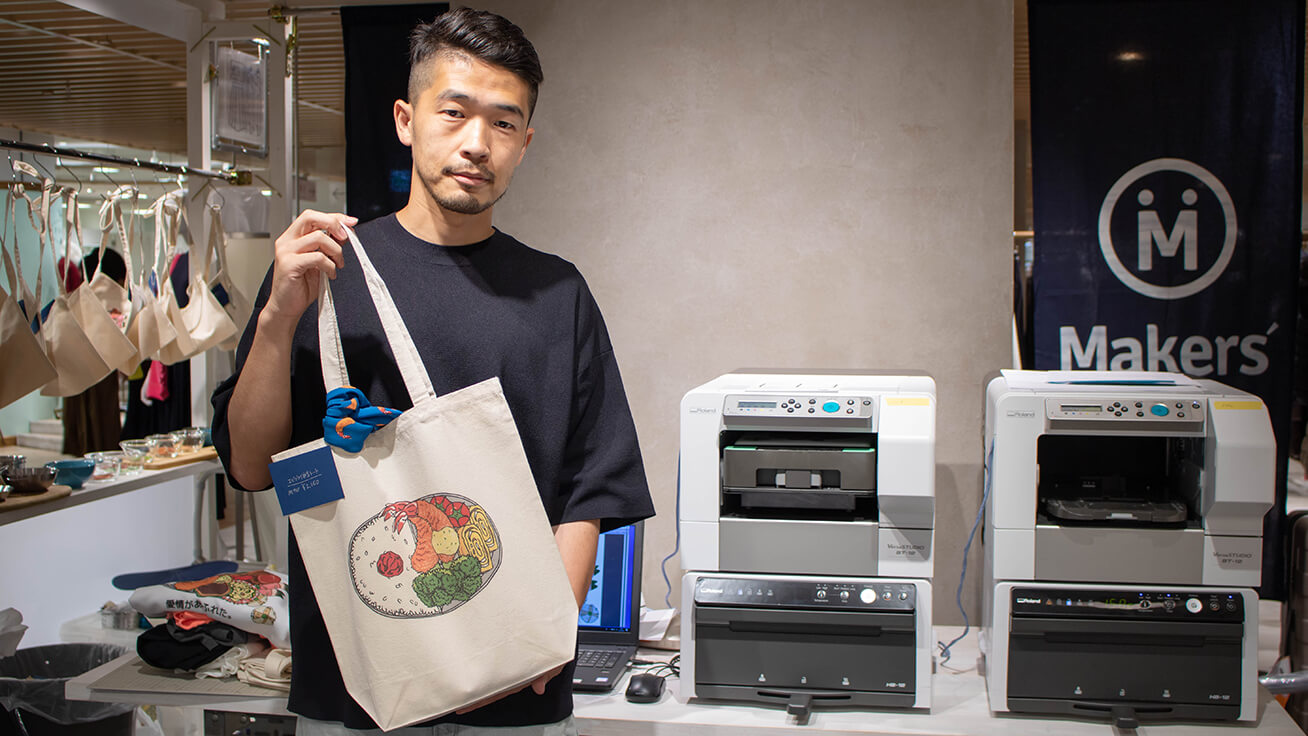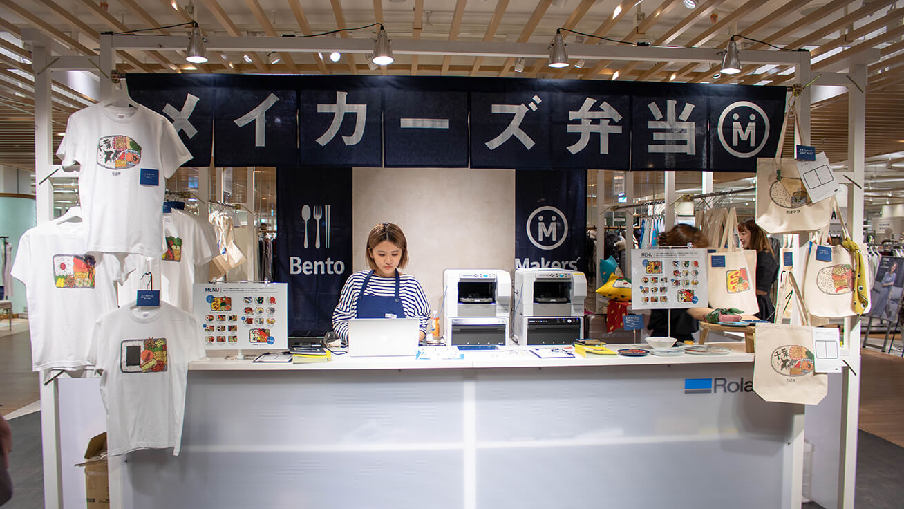Makers’ Base从今年夏天开始便在各会展场所和商店推出了预约定制化服务。顾客可以从约100种菜肴的图案中根据自己的喜好来选择,并组合成便当样式的设计,将其印制在提包、T恤以及小巧轻薄的挎包上。