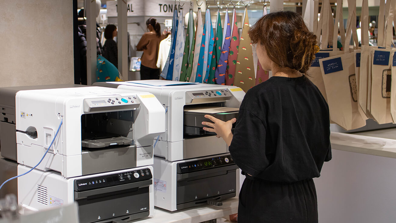 我们的工房一直都在使用罗兰DG的产品,包括UV打印机等。最近我们刚刚引进了新款还引进了BT-12数码直喷印花机。它能够轻松地在棉织物品上进行打印,引进成本和打印时间也很理想。我觉得对于这种活动以及定制化服务来说,它是最合适的产品。
