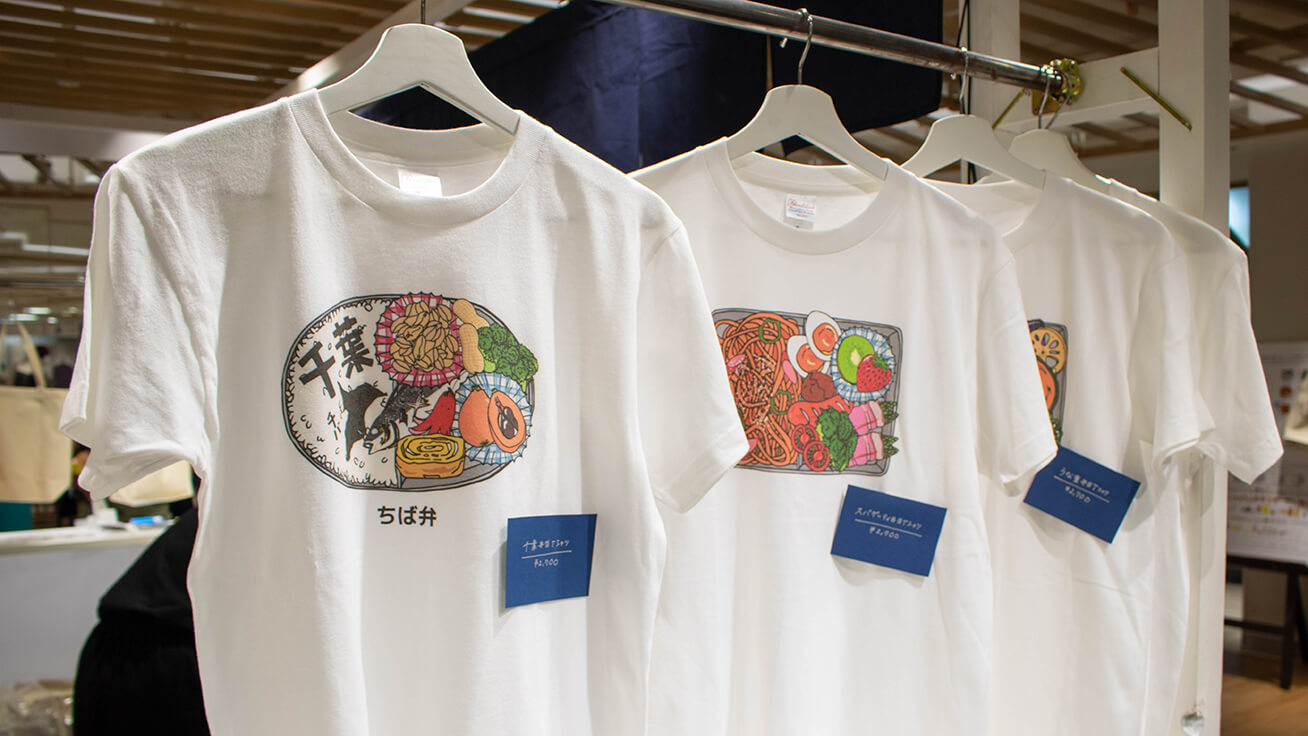 限定图案,汇集了落花生等千叶特产的“千叶便当”T恤