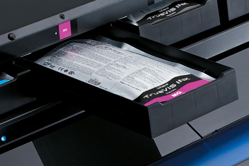 便捷的500ml墨袋,TrueVIS INK可置于可重复使用的墨盒的隐藏墨夹中,清洁易用,减少浪费。TrueVIS符合最严格的环保标准,在降低用户墨水使用成本的同时确保一流的颜色和图像质量