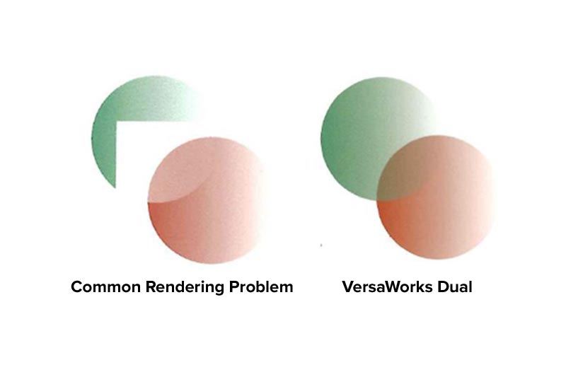 VersaWorks Dual可处理并打印透明度,阴影,模糊效果和其他图案效果。PDF / PostScript核心引擎可以按照设计方式来渲染所有效果。