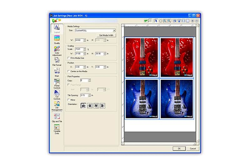通过无限队列设置管理并确保打印生产能力。通过保存和存储选项来捕获特定的打印设置,VersaWorks的双可以通过使用这些预设设置提前计划和组织打印生产。