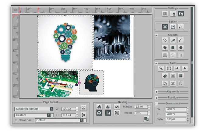 嵌套工具可以在节省空间的布局中自动将多个打印作业放置在同一材料上,并允许您根据轮廓线剪裁图像,以实现紧密放置。这可以在同一生产运行中实现多个图像的长时间打印运行,并帮助用户很大程度地减少材料浪费并降低材料成本。还有手动嵌套功能可用于自定义间距和材料规划。