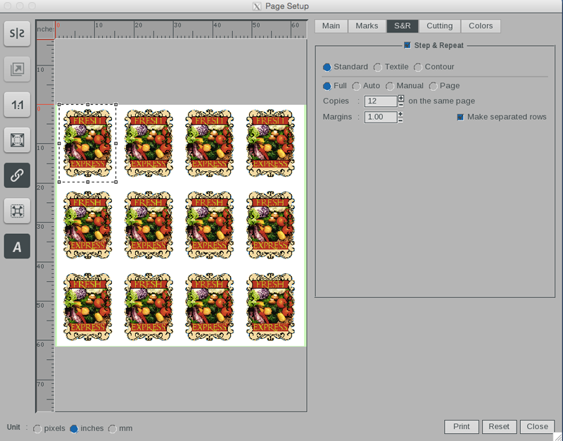 分步和重复工具可以利用自动和手动间距功能高效准备图像,方便后续重复打印和切割。它还提供正或负出血选项,实现完美精准的图案打印和切割。此外,用户可以设置轮廓路径以实现材料使用。